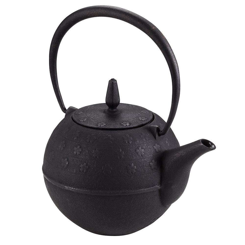 fk094igrjs日本の花、桜をモチーフにした商品です サイズ (約)φ15.5×H18.7cm 個装サイズ:14×14×11cm 重量 約1000g 個装重量:1050g 素材・材質 本体:鋳鉄(内面:ホーロー加工) ツル:鉄線 仕様 満水容量:約0.6L 食洗機不可 ツル(取っ手):倒れるタイプ 生産国 日本 伝統的な墨色の急須 日本の花、桜をモチーフにした商品です
