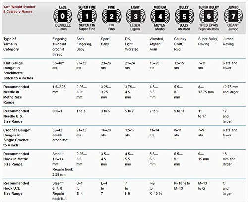 Each skein is a rainbow of colors, 4.2 ounces and approximately 310 yards. 100% Acrylic Gauge 3, Dk Light Worsted. Machine wash and dry.