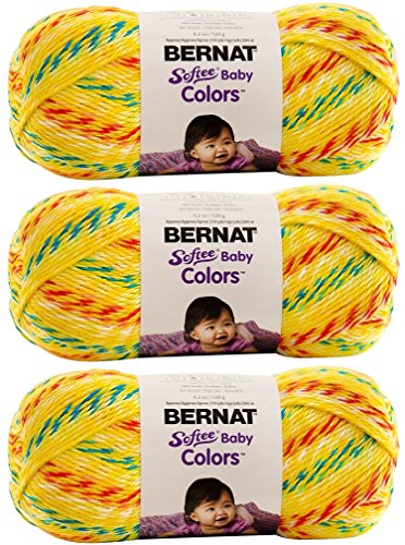 3 skein factory pack is nice for larger projects, bundle includes dye lot match 3 bag pack of Rainbow Yellow. Includes 3 bonus patterns in addition to the pattern under the label. Two to crochet and one to knit.