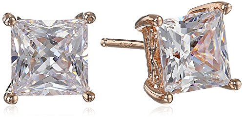 Rose-Gold-Plated Sterling Silver Swarovski Zirconia Princess Cut Earrings (5 cttw)