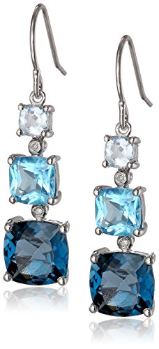 STERLING SILVER LONDON BLUE TOPAZ, SWISS BLUE TOPAZ, LIGHT BLUE TOPAZ AND DIAMOND DANGLE EARRINGS