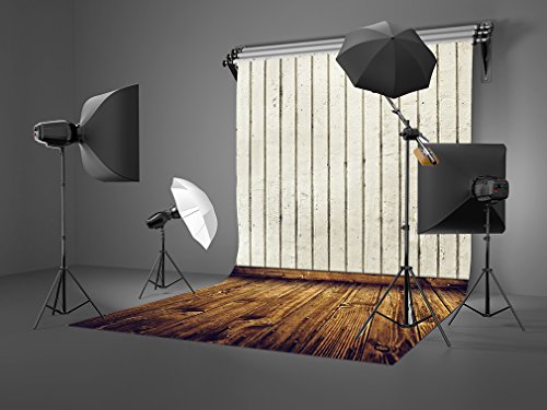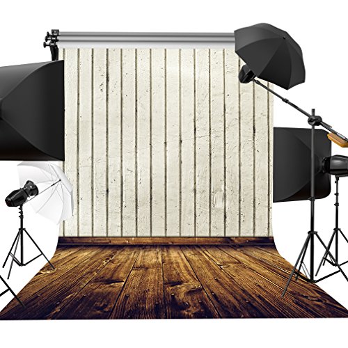 Kooer 5x7ft Ivory White Wall Photography Backdrops Old Wood Floor Photography Backgrounds Photo Studio Prop Baby Children Family Photoshoot Backdrop Customized Various Size