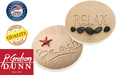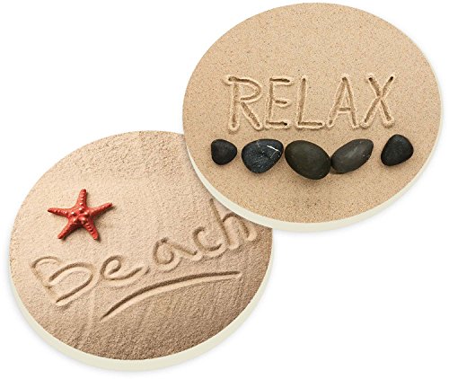 Relax Beach Ocean Sand Ceramic Car Coaster Pack (Set of 2)