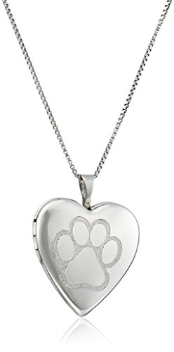 sterling silver necklace featuring engraved paw heart locket pendant