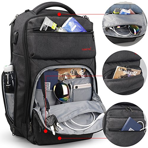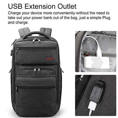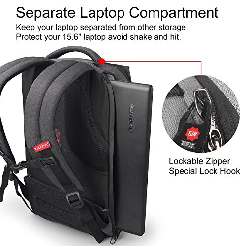 TIGERNU Business Backpack fits 15.6 Inch laptop/notebook Computer Backpack with USB Charging Port/ Water Resistant/ Tear Resisting/ Lightweight Travel Bag (Dark Gray)