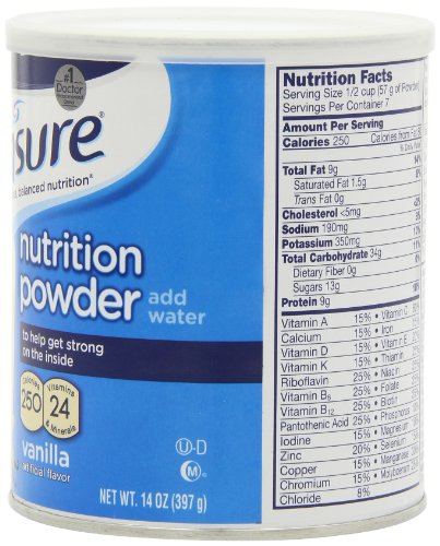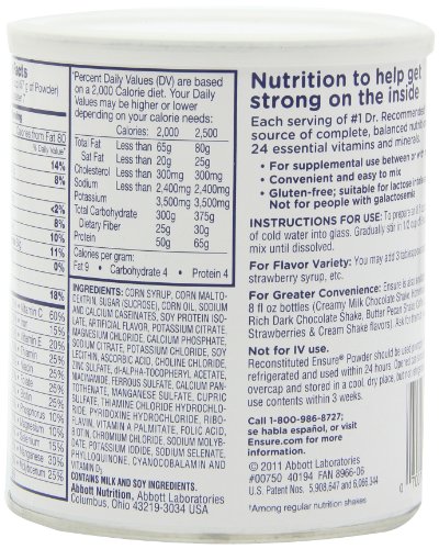 Ensure Powder provides complete and balanced nutrition from the No.1 doctor recommended brand. The convenient powder form makes it easy to mix with your favorite foods and beverages, and it’s easy to store. Per serving, it contains 24 essential vitamins and minerals plus 9 grams of protein. Ensure Powder has a number of benefits, whether you're looking for a convenient source of nutrition or recovering from an illness or surgery.Feature