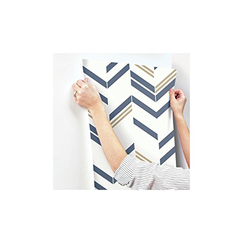 RoomMates RMK9002WP Chevron Stripe Peel and Stick Wallpaper, 20.5" x 16.5 feet, Blue