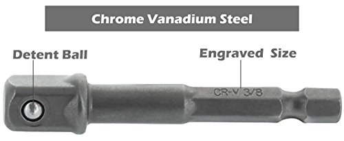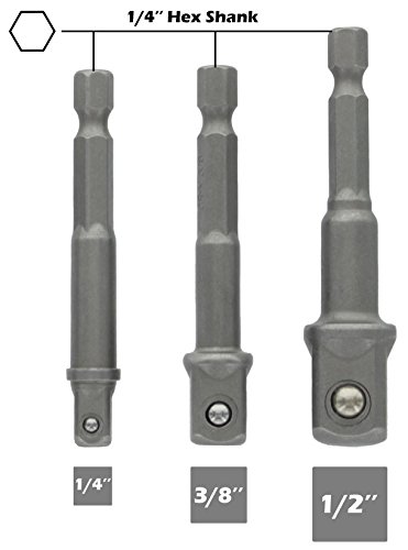 - ✓ DESIGN: The Shaft Quick Change Hex Design allows to switch easy & fast between the different size adapters without stripping at high speed operations – Sandblasted Finish for best durability - Spring Loaded Extension Ball Bearings holds onto the sockets securely preventing fall-offs.