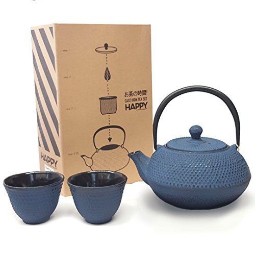 -. Title : Happy Sales HSCT-ABL02, Happy Sales Cast Iron Tea Pot Tea Set Blue ARR