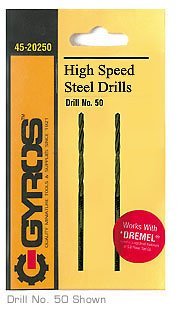 Gyros High Speed Steel Drills are tough, sharp and will stand up to heavy, high RPM usage with very little wear. This makes them ideal for metal and deep hole drilling. They can be used in hand and motorized tools.