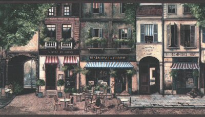 -. Title : Wallpaper Border Paris Cafe Street Scene