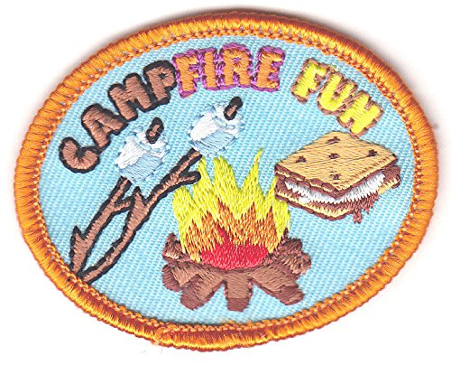 -. Title : "CAMPFIRE FUN" PATCH -Iron On Embroidered Patch-Trip, Vacation, Outdoors, Woods