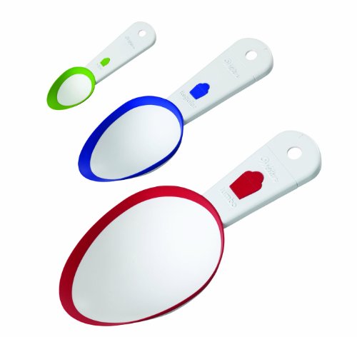 Studio : Wilton Publisher : Wilton Binding : Kitchen Product Description Fill jumbo, standard and mini baking cups 2/3 full every time. Also great for muffins and pancake batter. Egg-shape design makes pouring easy and mess free. Flexible edge helps scrape batter from bowl. Cupcake-shaped plastic ring holds spoons together. Nests for compact storage. 0