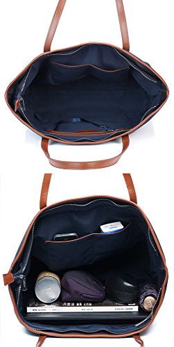 Classic Tote Design with Large Capacity ? 1 main compartment, 2 slip pockets and 1 interior zip pocket. A fixed interior keychain strap: it can avoid the embarrassing situation of rummaging keys. ? Ample room for 14 -17 inch laptops, iPad, cosmetic, tissue, A4 size file, books, cellphone, Clothes and more. Great for outing, office, museum, mall, school and trip. ? Inverted trapezoidal shape can highlight you of tall feeling. Maintenance Tips ? When stained with dirt, please dip it in soapy water with a soft sponge brush and gently wipe, and dry it in the shade. ? When not use for a long term, tightly wrapped it into the bag and placed in the desiccant.