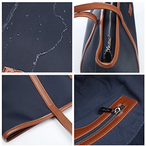 Oxford Nylon Fabric ? Imported oxford nylon: waterproof, sturdy, wear resistant and wrinkle resistant. ? Polyester cotton lining: fadeless and feeling comfortable. ? Ultra-light weight: only 1.4 -1.5 pounds. Dimension: Large Size: 20.4"(Top Length) x6.7"(W)x12.2"(H) ? Medium Size: ?17.7"(Top Length) x5.9"(W)x11"(H) ? Cow Split leather shoulder strap with strong bearing strength. Easy to carry on everyday use or ?as diaper bag.