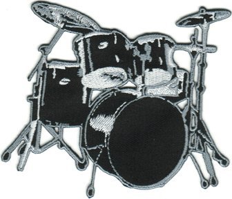 Drum Set - Black And Grey - Embroidered Iron On Or Sew On Patch