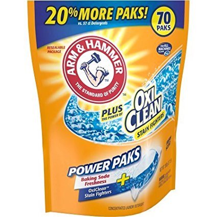 Studio : Product Arm and Hammer Publisher : Product Arm and Hammer Binding : Kitchen Product Description Arm Hammer Plus OxiClean Fresh Scent Detergent Power Paks feature detergent, baking soda and two types of OxiClean stain fighters all in one powerful pak. Each pak is 99% active for a powerful clean. Drop one in today. 0