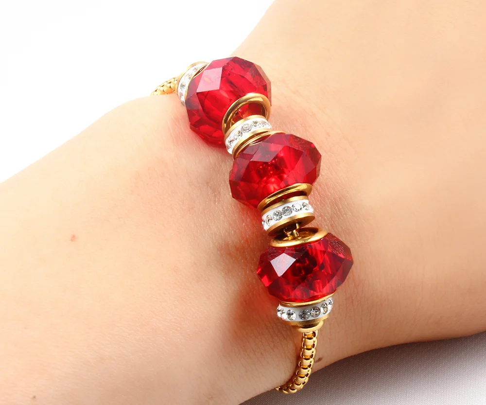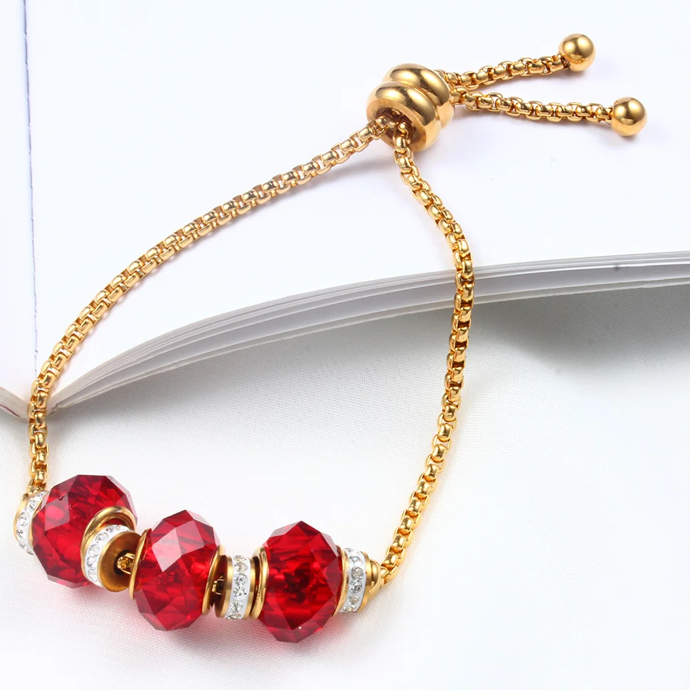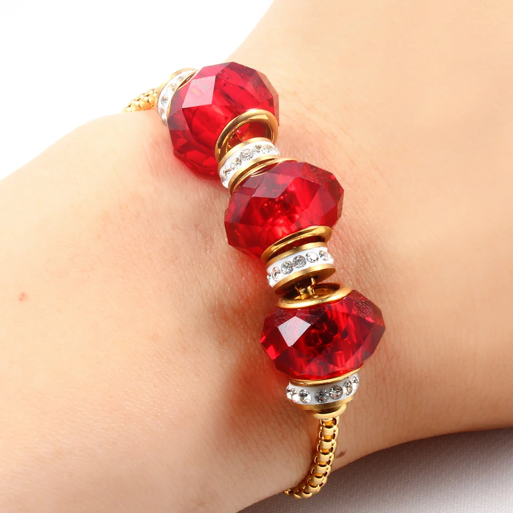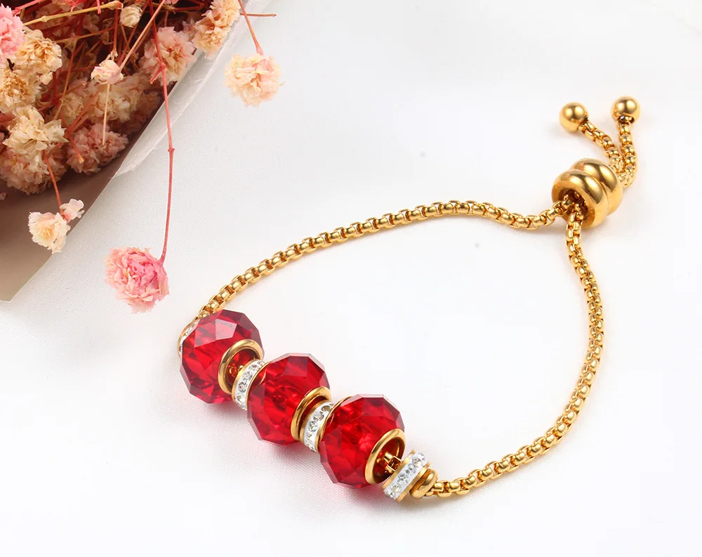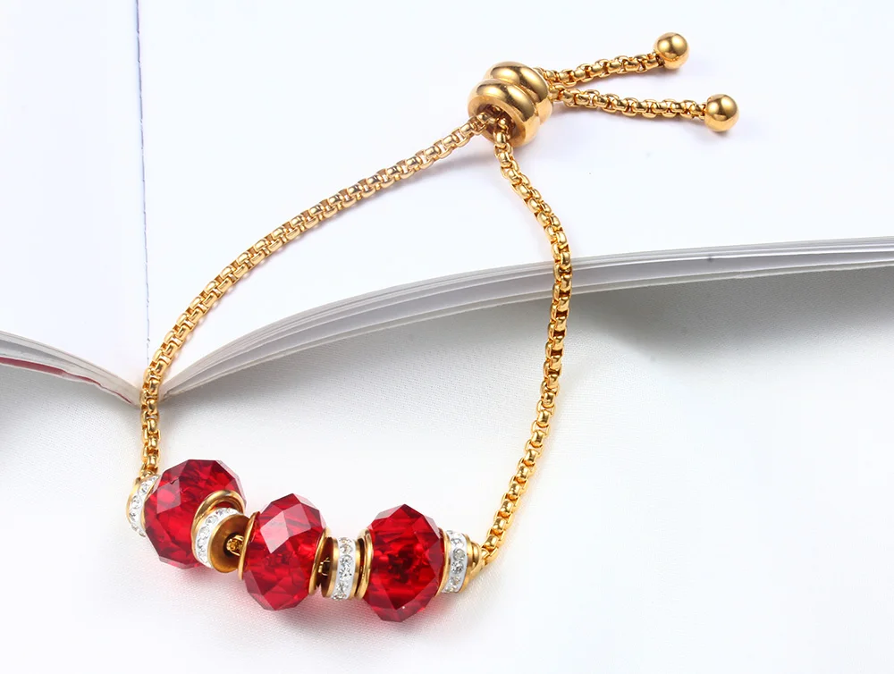 Tinct:gold bracelet chain red beads