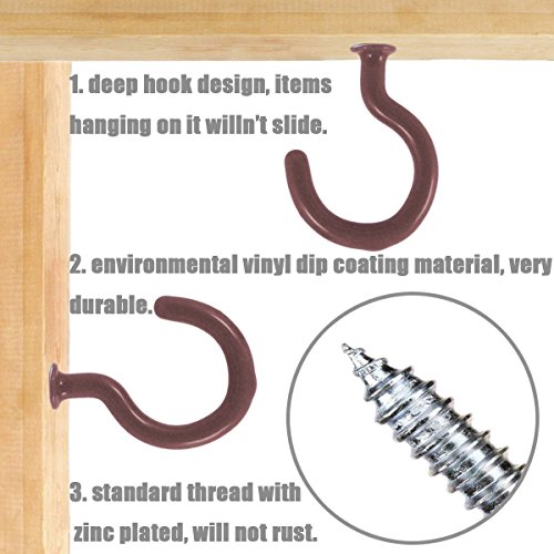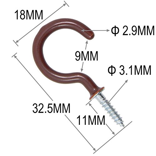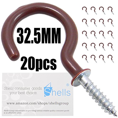Shells 20PCS Brown Color 32.5MM Vinyl Coated Hooks Cup Hooks Round End Screw Hooks Self-tapping Screws Hooks Question Mark Shape Hooks