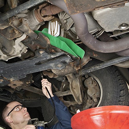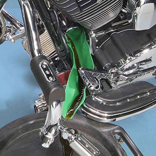 New Pig Form-A-Funnel flexible draining tool. Molds into and holds any shape to create a leakproof channel for draining oil or fluid. Thick, pliable nitrile rubber encases a thin layer of alloy to allow thousands of shapings. Highly-compatible nitrile resists common vehicle liquids in temperatures from 0 to 300 degree F. Soft rubber edge forms a seal around filters or drains. Easily wipes clean with most cleaners and degreasers. Easy to store flat or rolled up in toolbox or glove compartment. Lawn and garden size is great for draining oil, gasoline and other fluids from small engines and equipment such as lawn tractors, ATVs, snowmobiles and generators. Made from nitrile skin and aluminum core. Measures 9-inches length by 4-3/4-inches height by 0.094-inches thick. Green color.Feature
