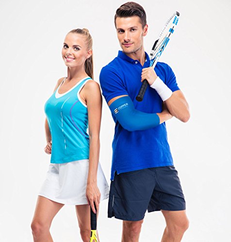 Copper Compression NEW Colored Elbow Sleeve - GUARANTEED Best Copper + Zinc Elbow Brace With Infused Fit. Support For Workouts, Golfers And Tennis Elbow, Arthritis, Tendonitis. (Blue - Medium)