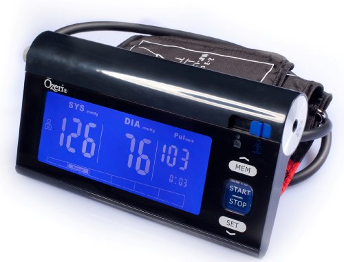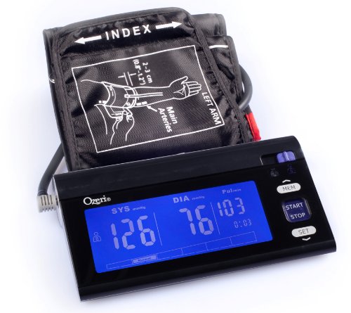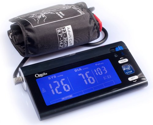 -. Binding : Health and Beauty -. Brand : Ozeri -. Color : Black -. EAN : 0815817010940 -. Feature : Powered by a state of the art CPU that utilizes a double pulse detection algorithm to enhance pulse wave detection, thereby improving accuracy / Features a blue LCD with LED backlight, touch sensitive buttons and a slider switch for easy user selection (stores 120 blood pressure readings with date and time recordings for 2 users) / Advanced one-step operation with fully automatic inflation and dynamic measurement technology that adjusts the cuff's inflation according to real-time blood pressure detection to reduce measurement time and increase user comfort / Automatic irregular heartbeat (Arrhythmia) detection and hypertension indicator using an intelligent graphical display; With intelligent hypertension detection / Push-button access to average blood pressure reading and clock, date and time stamp for each blood pressure reading -. IsAdultProduct : 0 -. Label : Ozeri -. Manufacturer : Ozeri -. Model : BP3T -. MPN : BP3T -. PackageQuantity : 1 -. PartNumber : BP3T -. ProductGroup : Health and Beauty -. ProductTypeName : HEALTH_PERSONAL_CARE -. Publisher : Ozeri -. Studio : Ozeri -. Title : Ozeri CardioTech BP3T Upper Arm Blood Pressure Monitor With Intelligent Hypertension Detection, Black -. UPC : 815817010940