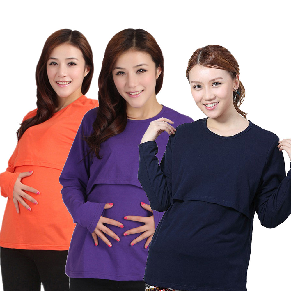 Pregnant Maternity Clothes Nursing Tops Breastfeeding Long Sleeve T-Shirt