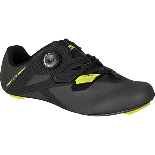 Studio : Mavic Publisher : Mavic Binding : Misc. Product Description The shoulder seasons always present a sense of urgency in our riding. Fall brings shorter days as we try to squeeze in some quality rides before winter sets in. In the early spring, cabin fever has us itching to get off the trainer and hit the roads. We have different kits that we wear for each season, why would our shoes be any different? If you are looking to maximize your riding experience in these type conditions where lighting may be low or weather might be unpredictable, the Men's Cosmic Elite Vision CM Shoe from Mavic will surely keep your feet comfortable and dry and provide additional visibility to drivers. The Clima Mavic construction on the front half of the shoe keeps your feet dry and insulated and prevents water absorption during the course of the ride. The upper material is super easy to clean so you can wipe the mud and grit off from your heroic day in the saddle and have them looking like new again. Mavic yellow highlights and 360-degree reflective black and silver synthetic finish don't sacrifice breathability. These shoes are highly visible in conditions typically seen in fall and spring that have you out riding before the sun rises and after it sets. Mavic's DNA of creating high-quality race shoes that pros count on extends to these shoes. The footbed consists of a high-quality OrthoLite insole designed to prolong comfort for the long days and offer a good fit which increases performance. The Mavic Ergo Dial and hook-and-loop straps handle closure duties and it's easy and precise retention system makes tightening down the shoes right before an extended climb or sprints a cinch. Harnessing all of your pedaling power is the Energy Carbon Comp Outsole which is super light, extremely stiff, and its thin outsole with carbon reinforcement and composite glass fiber and polyamide inserts ensure a low stack height to the pedals. 0