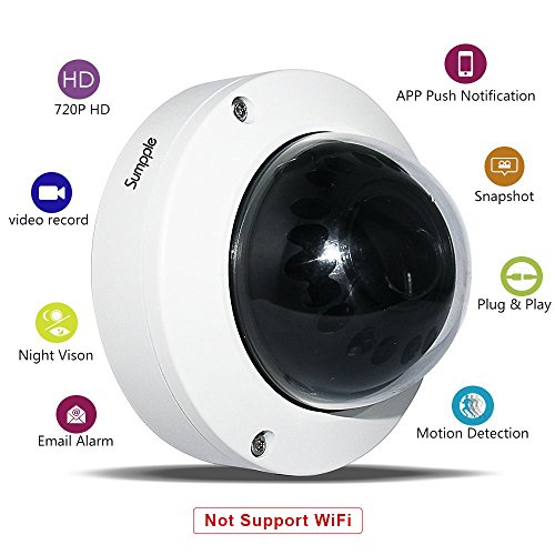Sumpple Wired 720P 1.0MP Indoor Security Internet Dome Camera, Day/Night Vision, Motion Detection, Video Record, Email Alarm for Home/Office/Business, Support iPhone, Android Phone or Windows PC White