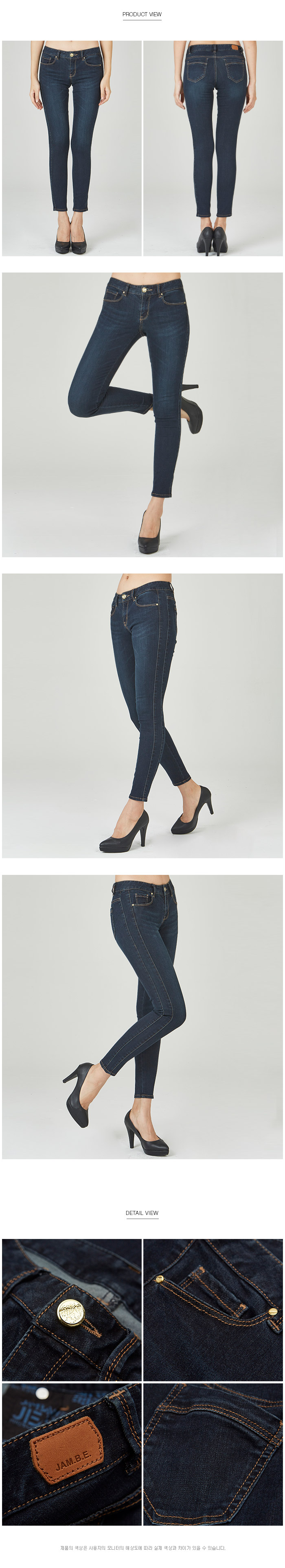 섬유조직이 부드러운 텐셀원단을 사용하여 민감한 피부에도 자극이 없는 소재로 옆선의 절개를 넣어 훨씬 슬림해보이는 다크한 칼라의 기본 워싱 여성 SN핏 데님 스타일 입니다.