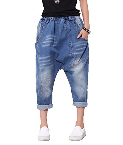 -. Title : Sokotoo Women's Loose Elastic Waist Cross Drop Crotch Crop Jeans