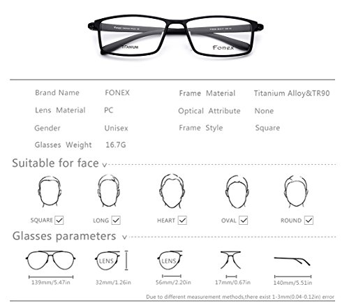 | FONEX 2017 TR90 Square Full Glasses Frame Men Myopia EyeglassesFemale Prescription Eyewear 9030 |