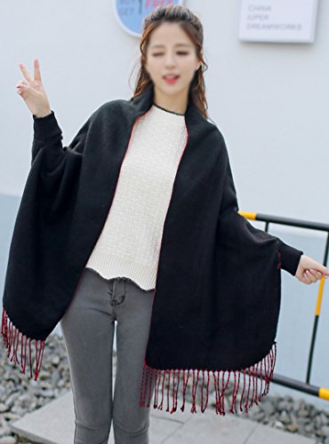 Material: Cashmere-like Acrylic Women's Warm Sided Cashmere Shawl Poncho Cardigans with Tassels Feature: High quality material Cardigan Cape, fabrics soft, fine, feel is smooth and natural; Thick and smooth, keep you warm in the winter; This shawl cardigan is full of design elements. This shawl cardigan can be worn sided. Great xmas Birthday New Year Holiday gift for your friends and loved ones