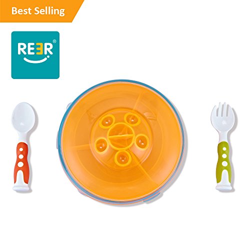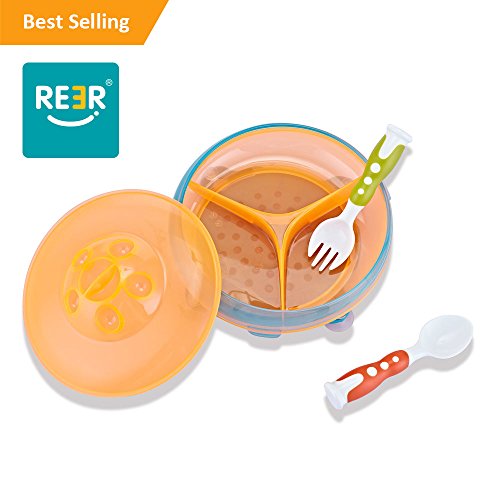 -. Binding : Baby Product -. Brand : reerpu -. Feature : Strong Suction and Twisty Base: Help prevent spills. We have upgraded our bowls to even better suction and our bowls have shown to have as good or better suction than any other brand. / Unique curved rim to help guide more food onto forks and spoons. Sloped base slides food to the sides. / Bonus Spoon: You will be ready for mealtime without any additional purchase required. / BPA-free, Latex free, Lead free and Phthalate free. / Top rack dishwasher safe. -. Label : reerpu -. Manufacturer : reerpu -. MPN : YH17200 -. PartNumber : YH17200 -. ProductGroup : Baby Product -. ProductTypeName : BABY_PRODUCT -. Publisher : reerpu -. Size : Large -. Studio : reerpu -. Title : ReeR Section Plate Divided Dish With Bonus Spoon and Fork