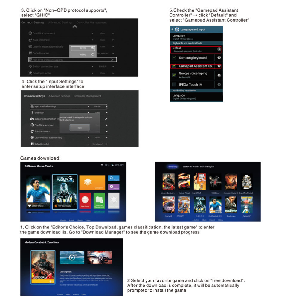 Support for most large game and simulator game Android system (such as MC4, Wildblood, Dungeon Hunter, Zombie, FC simulator, for GBA simulator, arcade simulator, SFC simulator, N64 simulator, Shadowgun, Sonic, CD, Cordy, Soulcraft, Zenonia4,9,Innings 2013, Riptide GP)