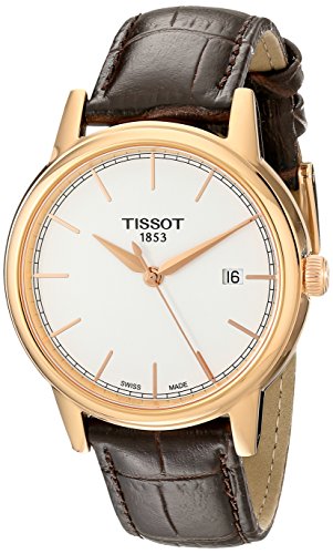 -. Binding : Watch -. Brand : Tissot -. Color : Brown -. Department : mens -. EAN : 7611608262832 -. Feature : Round watch in rose gold with notch hour markers and text logo on plain face / Swiss quartz movement with analog display and date window / Antireflective sapphire crystal dial window / Buckle closure / Case Diameter: 40mm / Water resistant to 99 feet (30 M): withstands rain and splashes of water, but not showering or submersion / Antireflective sapphire crystal / Stationary bezel / Swiss-quartz Movement / Water Resistant To 99 Feet -. Label : Tissot -. Manufacturer : Tissot -. Model : T0854103601100 -. MPN : T0854103601100 -. PackageQuantity : 1 -. PartNumber : T0854103601100 -. ProductGroup : Watch -. ProductTypeName : WATCH -. Publisher : Tissot -. ReleaseDate : 2014-09-30 -. Studio : Tissot -. Title : Tissot Men's T0854103601100 Carson Analog Display Swiss Quartz Brown Watch