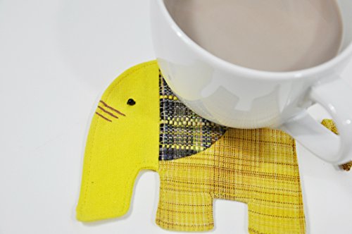 -. Title : Yellow Elephant Household Asian Thai Style Handmade Craft Sewing Cute Couster Cotton Fabric Elephant Shape Saucer From Chiangmai Thailand, Set of 4