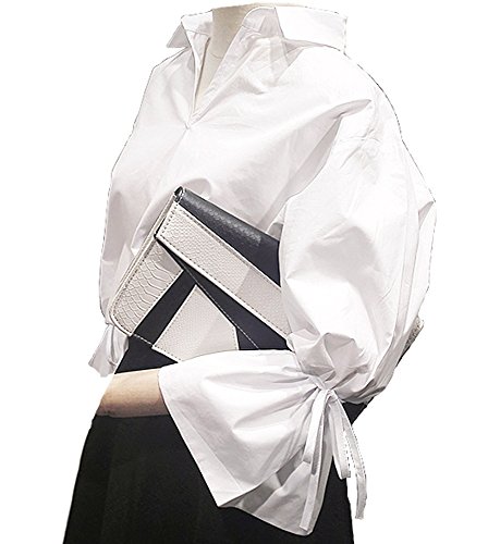 -. Feature : たっぷりのフレア袖とリボンが洗練された雰囲気を醸し出す、キレイめVネック長袖ブラウスです。 / スタイリッシュなデザインにかわいいリボンが付いており、フェミニンにも上品・甘辛MIXなど自分が表現したいどんなスタイルにも見せることができます。 / 何にでも合わせやすいカラーとデザインなので、オフィスシーンにも普段使いにも大活躍。一枚持っているとどんな時にも使えて重宝します。インナーやカーディガンなどコーデ次第でキレイめもカジュアルでもOK。オールシーズン着回しできます。 / 花柄・ボーダー等どんな柄物やカラーにも合わせやすく、またフレア袖が華やかさを引き立ててくれるのでシンプル過ぎずさりげないこだわりコーデが可能です。 / 【カラー】ホワイト 【サイズ】《S:着丈 62cm バスト 100cm 袖丈 44cm》 《M:着丈 63cm バスト 104cm 袖丈 45cm》 《L:着丈 64cm バスト 108cm 袖丈 46cm》 【ブランド】Hêtre(エートゥル)