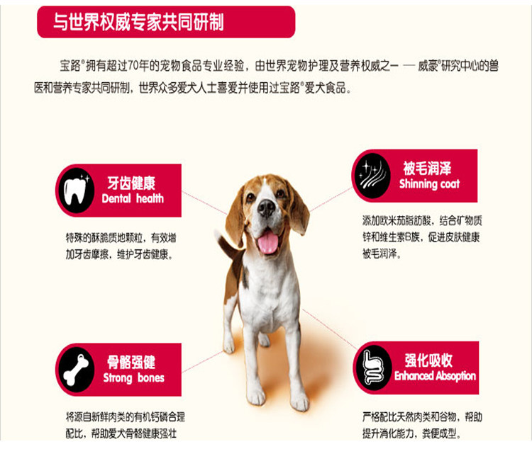 The main components: particles of meat, carrots, beans and three different shapes for dog 100% comprehensive and balanced nutrition: natural orange-red carrots, providing more carotene and vitamin C, and strong retaining nutritional supplements can effectively enhanced dog's resistance; natural green beans, vegetables provide more ingredients, fiber and minerals. Special add nutritious and delicious sandwich cakes are Pedigree global patent product! "Crunchy shell" to add more calcium, your dog's bones and teeth more robust and effective in preventing osteoporosis, "nutrition meat sandwich" in particular adding lecithin nutrients, enhance immunity and dogs aging. Give your dog more happy hour!