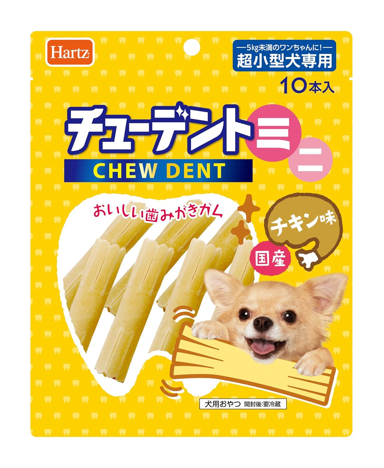 5Kg未満の愛犬でも食べきれる、おいしい牛皮ガムチューデントのミニサイズ10本入り、オリジナルチキンフレーバー。
