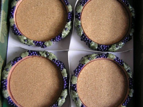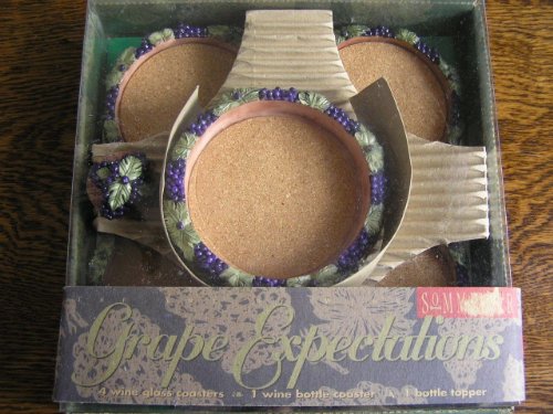 Sommelier Grape Expectations 6~pc Wine Bottle/glass Coasters & Bottle Topper~nip