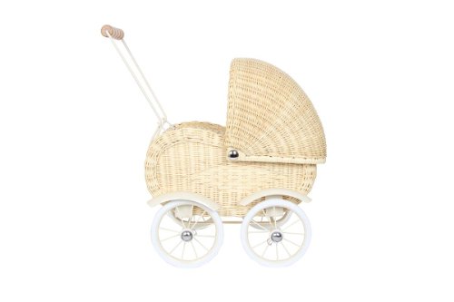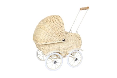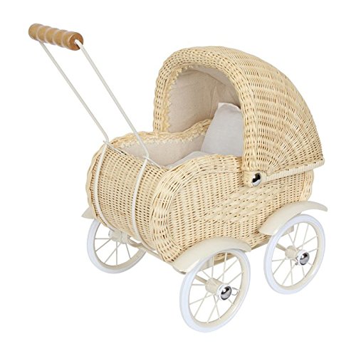 Small Foot by Legler Puppenwagen Korbgeflecht, Kinderpuppenwagen aus Rattan, Korbpuppenwagen mit beweglichem Verdeck und Wasche, ab 3 Jahre
