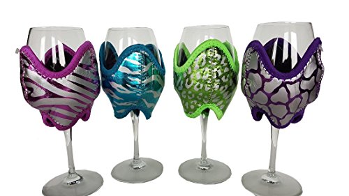 Wine Coozies Set of Four (4) Metallic Glass Sleeve Insulators