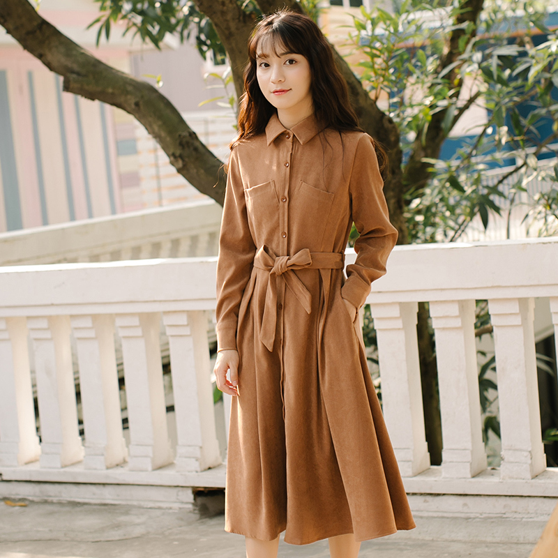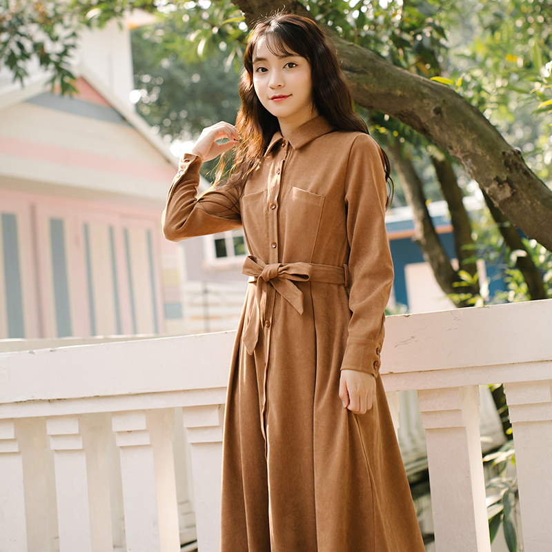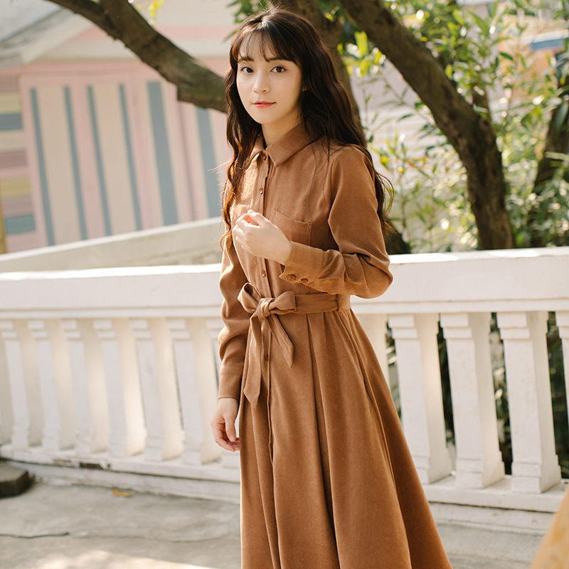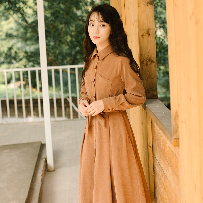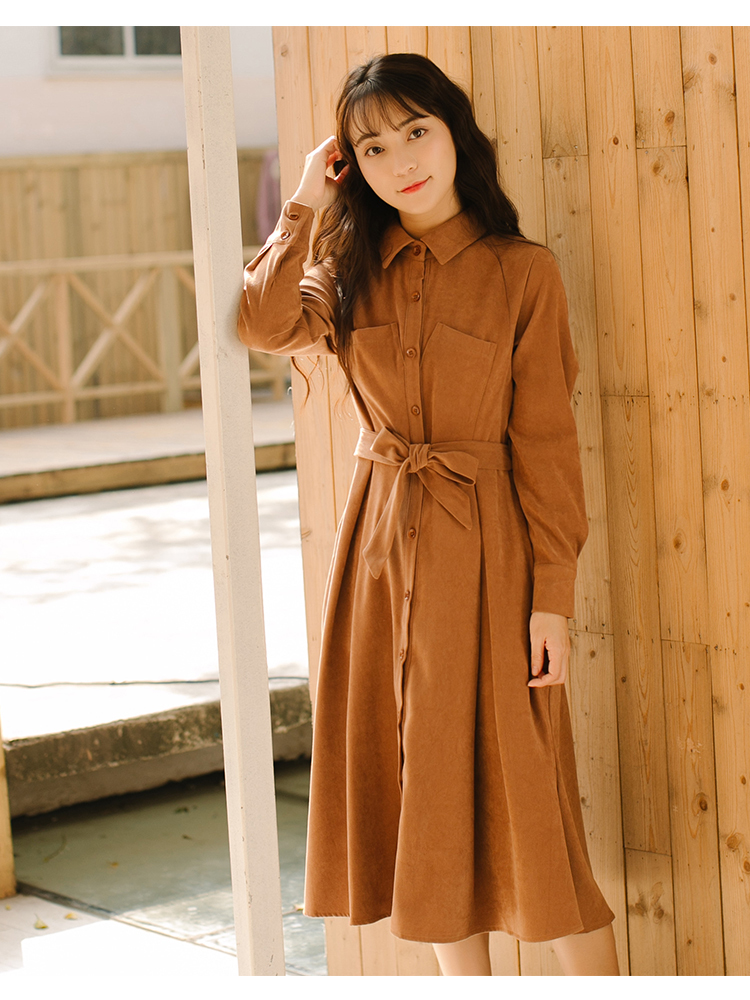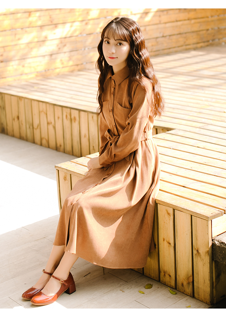 シンプルなスタンド襟のミモレ丈シャツワンピースです★