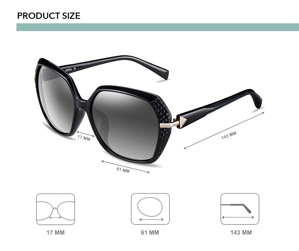 Kacamata QINA ini didesain dengan retro twist yang halus untuk memberi fashion statement. Desain OVERSIZE dan frame HITAM yang ringan memiliki lensa ABU ABU color POLARIZED dengan sentuhan akhir yang unik dan kualitas yang luar biasa dan proteksi UV 400 untuk melindungi mata dari efek berbahaya matahari. Datang dengan kantong designer premium yang unik dan colorful, serta kain pembersih GRATIS. .