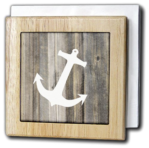 -. Title : 3dRose Florene - Nautical Décor - Image of White Anchor On Weathered Planks - Tile Napkin Holders