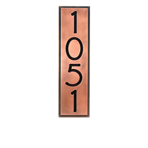 -. Title : Frank Lloyd Vertical Home Number Plaque 6.5x23 - Recessed Copper Patina Metal Coated