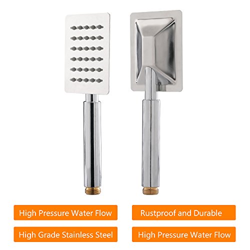 Square Handheld Shower Head Stainless Steel Shower Nozzle Hand Sprayer Thin High Pressure for Shower Bath and Spa, Chrome Finish