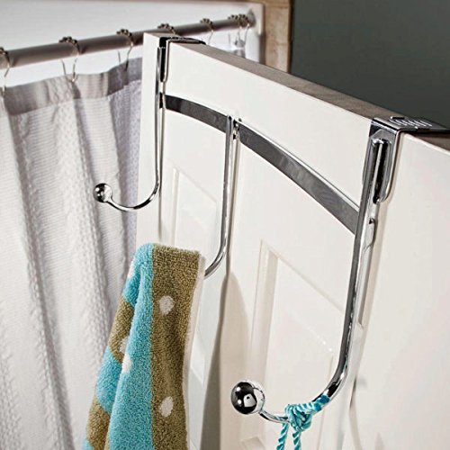 Hook Rail Chrome Adjustable Over-the-DoorBath Kitchen Towel Robe Rack (1 Pack)