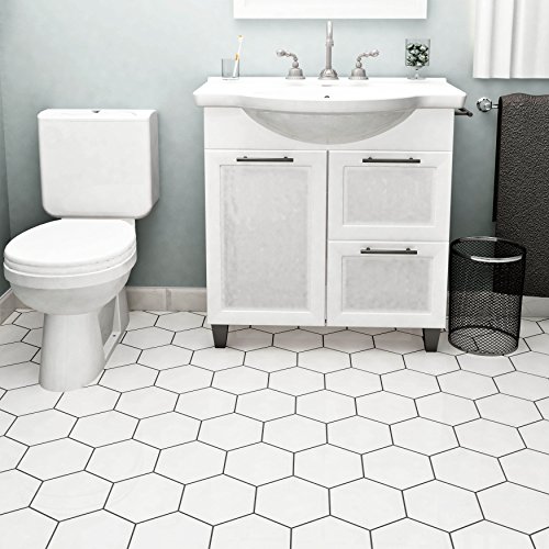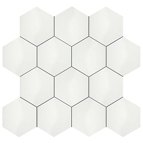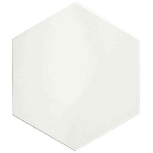 SomerTile FEQ8HGB Hexagono Ceramic Floor and Wall Tile, 7" x 8", White